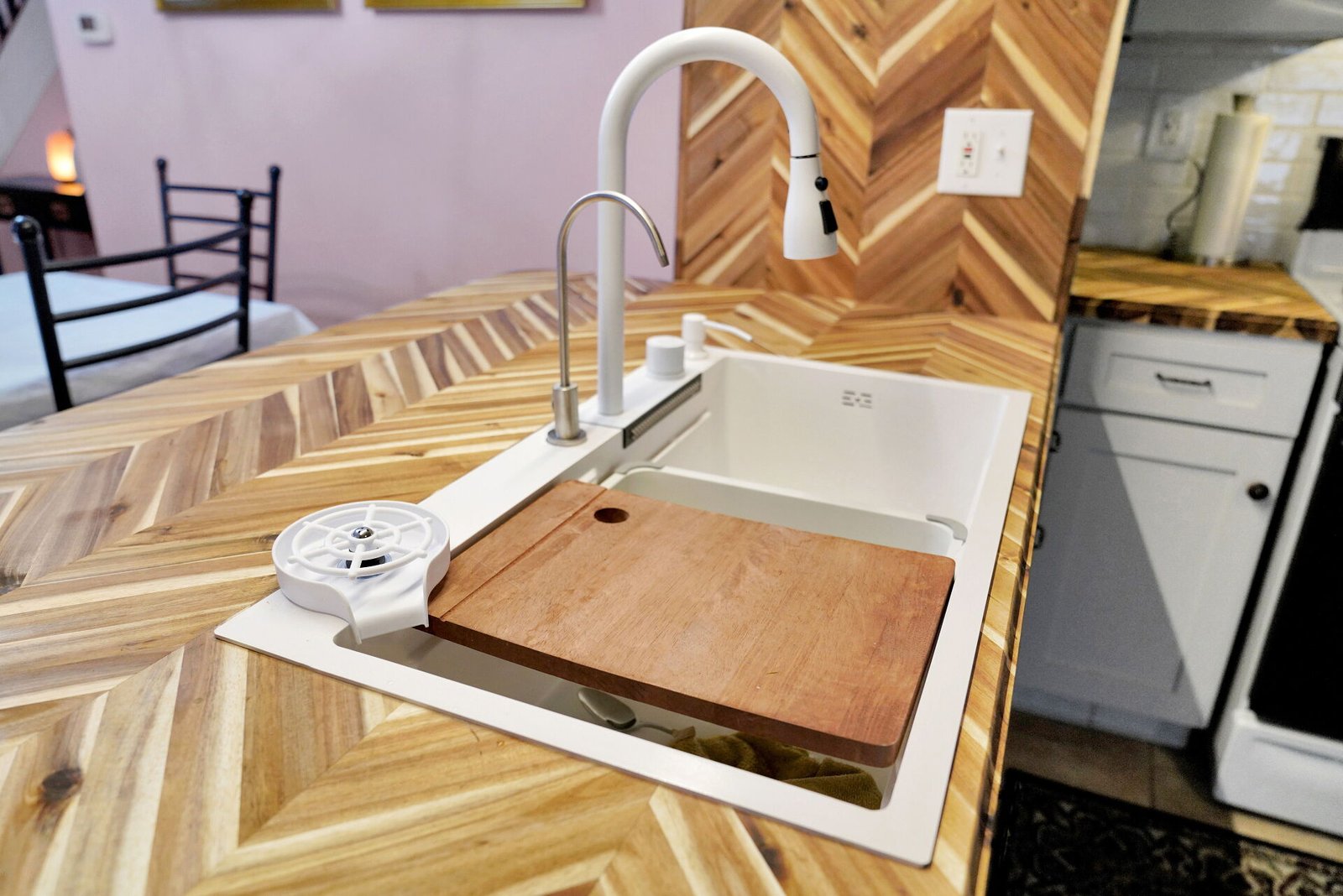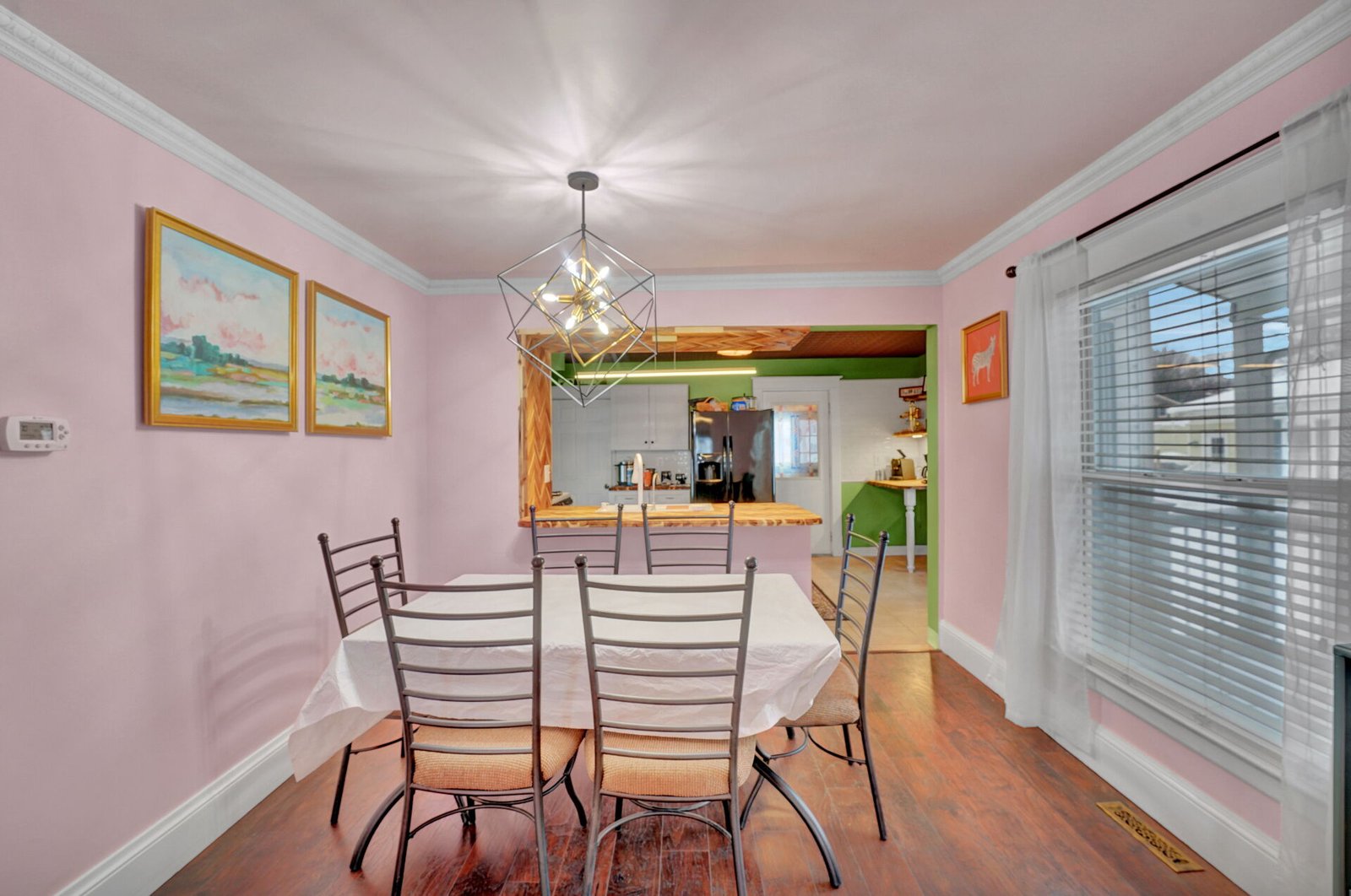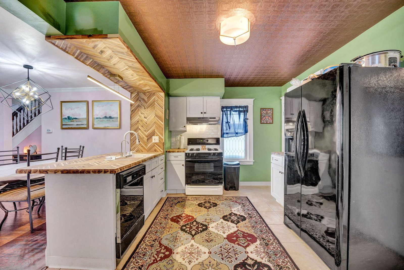 The heart of the home is the stunning kitchen, featuring emerald green walls, a vintage-style tin ceiling, and a custom handcrafted chevron wood island that is truly one-of-a-kind. It is fully equipped for cooking meals, though you might not need to cook often with Ellicottvilleโs best restaurants just a 5-minute walk away! With laundry on-site, high-speed WiFi, and plenty of room to spread out, this is your ideal home base.